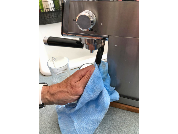 The stainless steel body wipes clean easily. A damp cloth is all you need. This makes daily upkeep quick and efficient. The steam wand is also designed for easy rinsing and drying.